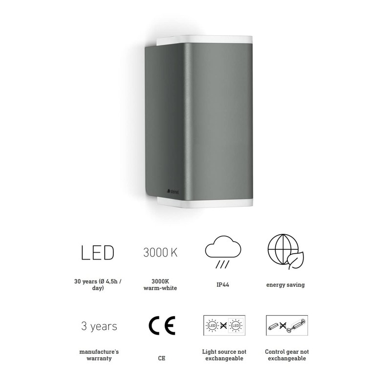 Steinel Steinel Wandleuchte L 930 Anthrazit, Up-/Downlight, 9.3 W LED Au?enleuchte, 3000 K warmwei?e Wandlampe, Aluminium