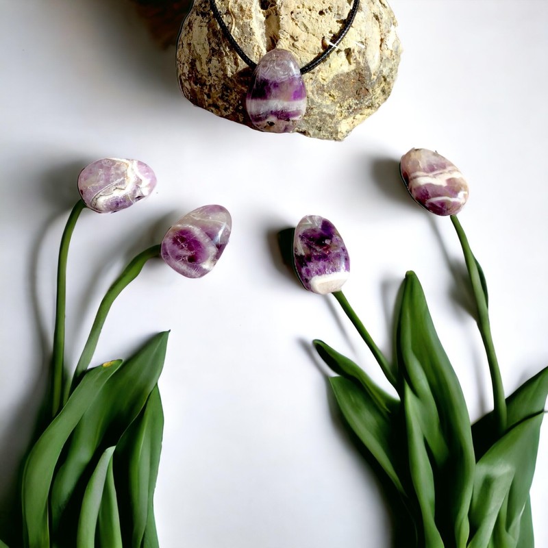 - You will receive a beautiful gemstone pendant made of chevron amethyst - zigzag amethyst - in teardrop shape with top quality leather strap
