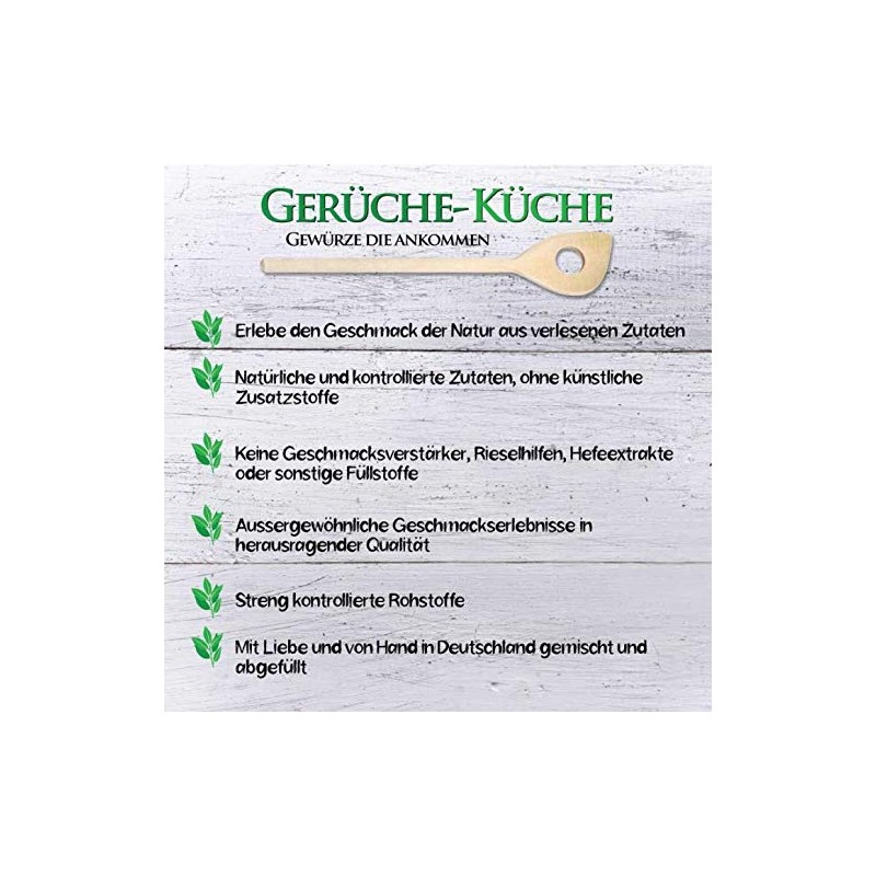 - Keine Geschmacksverstärker, Rieselhilfen, Hefeextrakte oder sonstige Füllstoffe. Streng kontrollierte Rohstoffe.