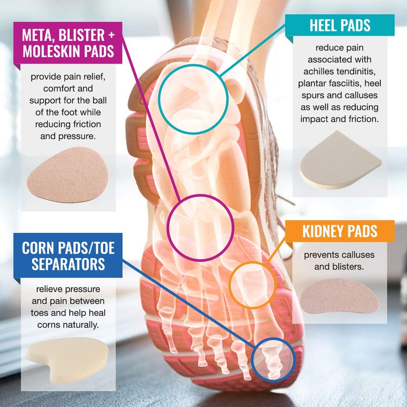 - Relieves pain in tender spots. Conforms to any area of the foot.