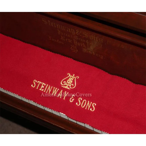 This red felt key cover is embroidered with the Steinway logo in gold thread. The cover protects any 88 note piano. A soft felt, this cover helps protect your keyboard from dust, while adding an attractive style to your piano. Keeping dust off your keys is important, as the oils from your fingers will mix with the dust and eventually leave your keys with that yellow/brown tint.