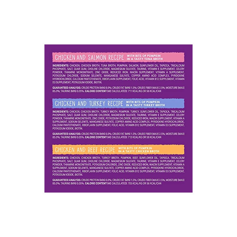 - Texture & Taste Cats Crave: Shredded muscle meat slowly simmered in a savory broth with bits of pumpkin delivers a special meal that will get your cat purring!