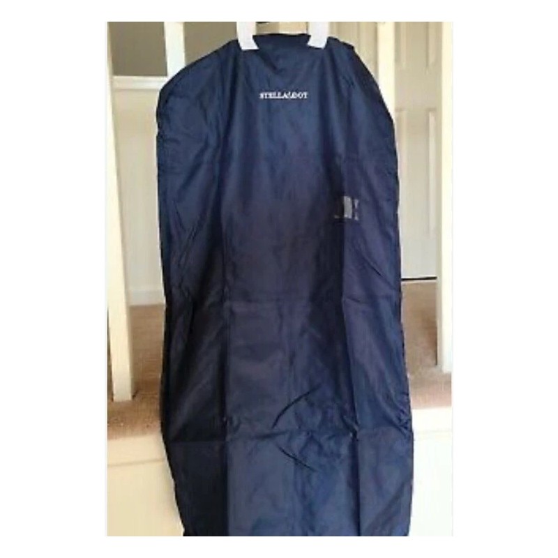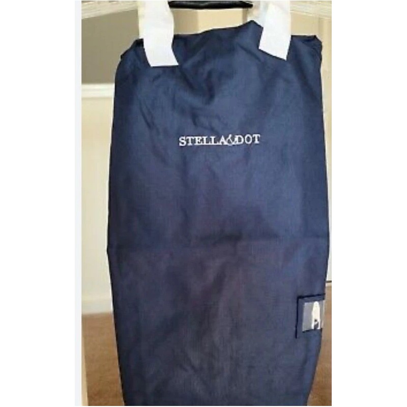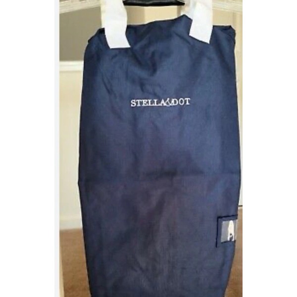 Keep your clothes organized and wrinkle-free with this stylish Stella & Dot Portable Travel Garment Bag. Featuring a navy blue color with a white handle, this garment bag is perfect for any travel enthusiast. With a size of 29\", it fits most clothes comfortably and is suitable for unisex adults.