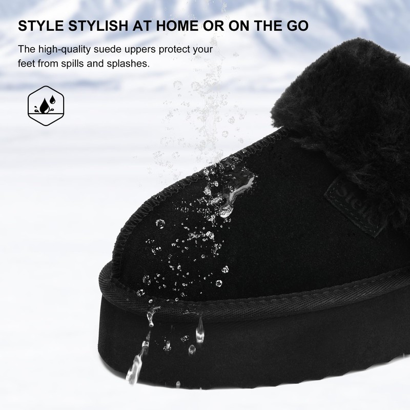 - Stylish Suede Uppers: Perfect for chill days, our snuggly platform slippers feature classic brown suede uppers for a luxurious look and feel. They timeless color goes with everything from PJs to casual outfits, and the material protects your feet from cold and spills
