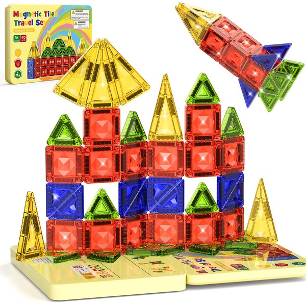 - Classic Color Magnetic Tiles for Creative Learning: With vibrant classic-colored magnetic building blocks, kids aged 3-8 develop STEM skills, creativity, and fine motor skills through hands-on play, ideal for quiet travel entertainment