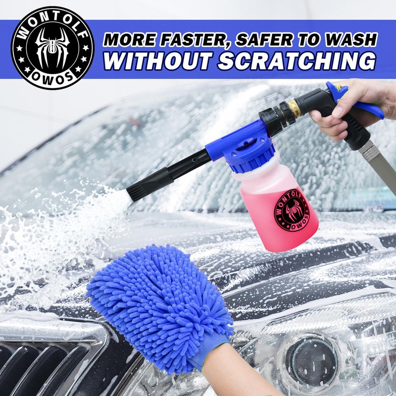 - 【FAST, EASY AND FUN】 - Wontolf Foam Wash Gun makes car cleaning fast, easy, and fun for the entire family. It easily connects to any standard garden hose—no additional tools or machines needed. It will turn your car wash into a foam bubble bath, gently removing dirt and contaminants without grinding them into your paintwork, ensuring a flawless, damage-free finish.