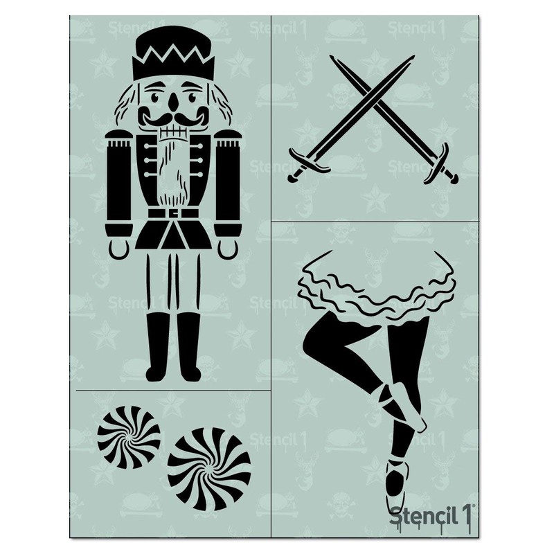 Stencil1 Winter Christmas Stencils (Nutcracker 4-Pack Stencil Set 8.5” x 11”)