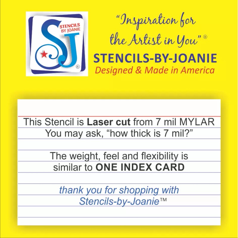 Visit my store for 100's of Creative Stencils & Craft items by Joanie. I can offer you a large variety in Original Stencil Designs with popular phrases and shapes. I am committed to the very best in customer service. Shop with me - your purchase will include quality materials, professional packaging & prompt shipping of every order.