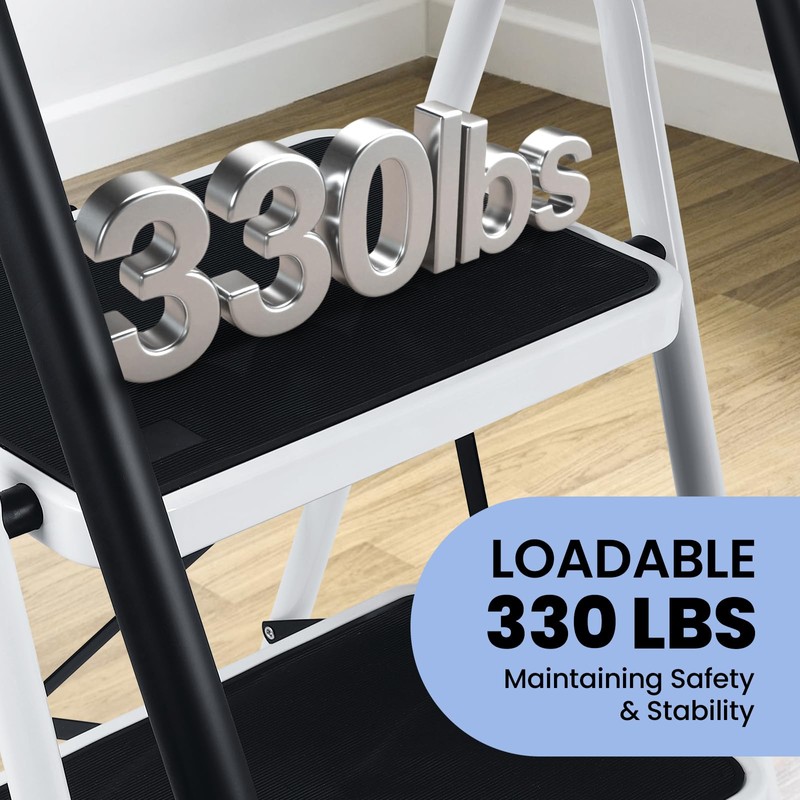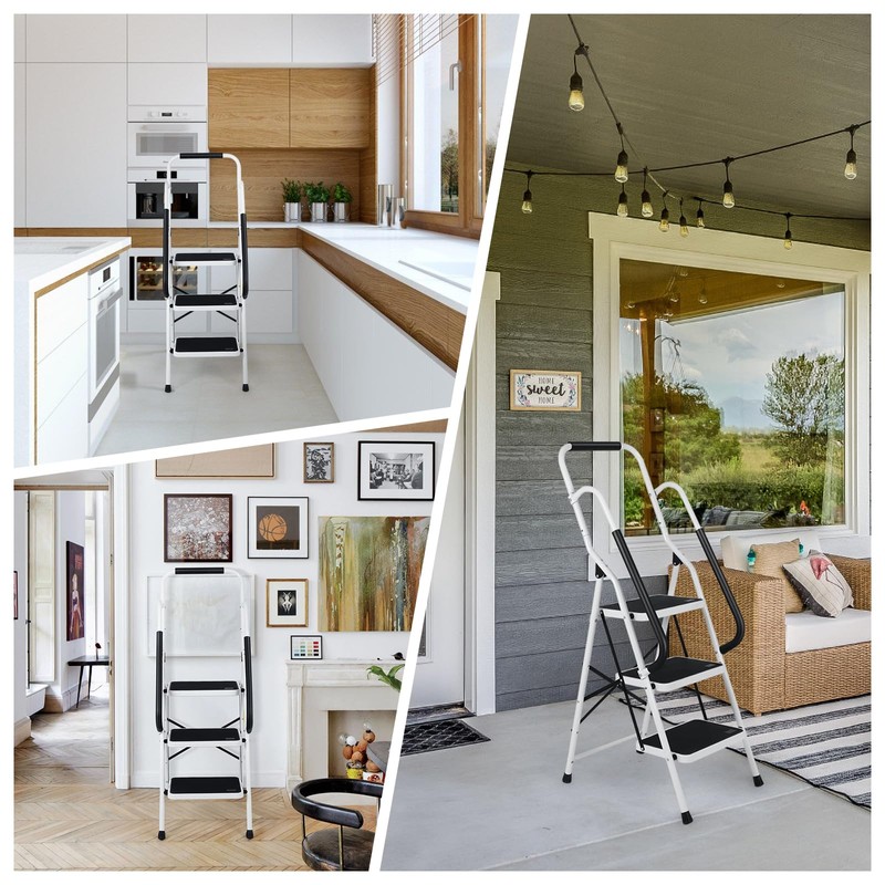 - Portable & Space Saving Step Ladder : This step stool only requires the installation of armrests. It opens and folds easily. When folded, it's only 4.1" deep, perfect for storage and transport. It's easy to carry for both indoor and outdoor use.