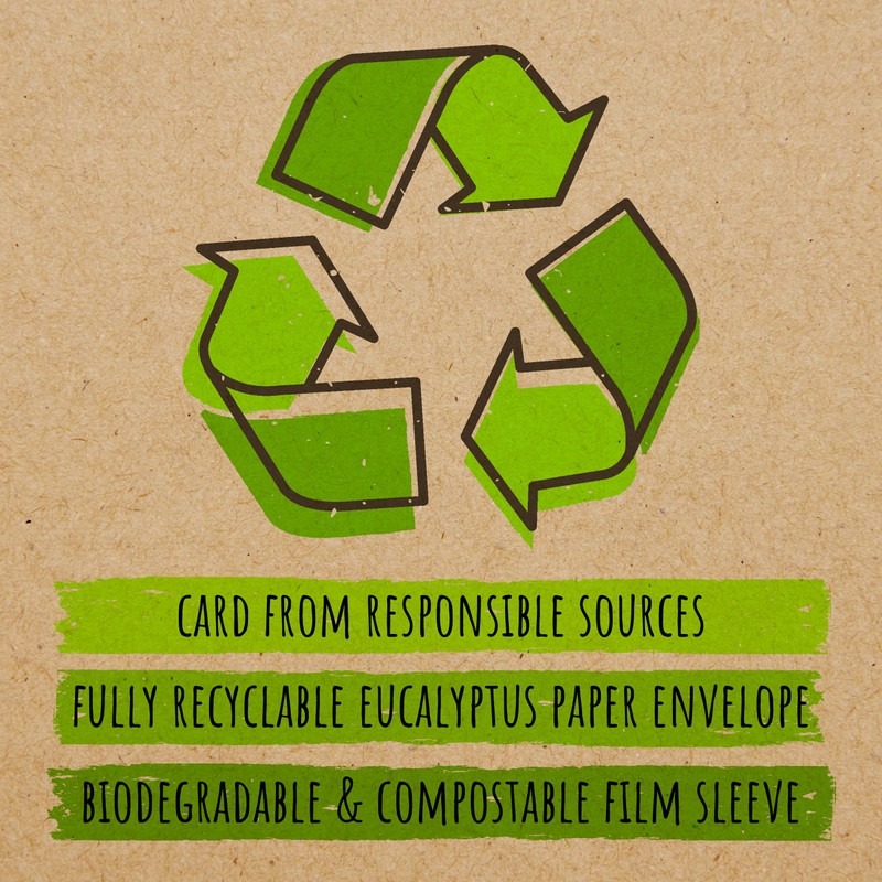 - Planet Friendly - We use only card from sustainable sources and our envelopes are made from recyclable eucalyptus paper. Our protection sleeves are 100% biodegradable and compostable, so that you can be assured that everything you will receive through the post is 100% recyclable.