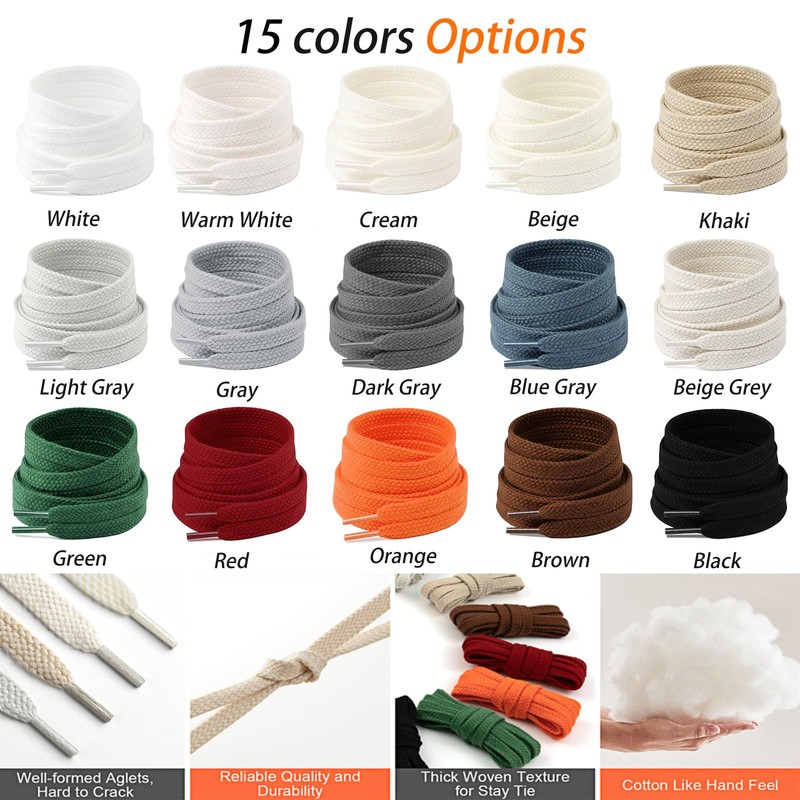 Stepace 2 Pairs 2/5" Flat Shoe Laces for Sneakers Upgrade Soft Shoelaces for ...