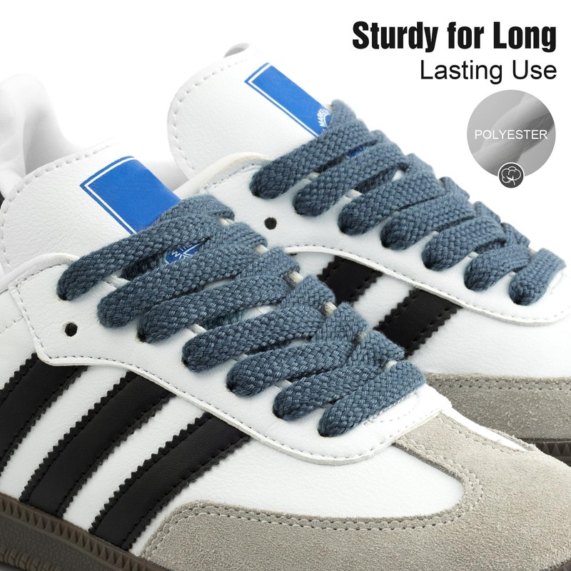 Stepace 2 Pairs 2/5" Flat Shoe Laces for Sneakers Upgrade Soft Shoelaces for Sneakers Flat Double Layer Shoestrings Replacement Boots Strings (Blue Gray, 55 Inches)