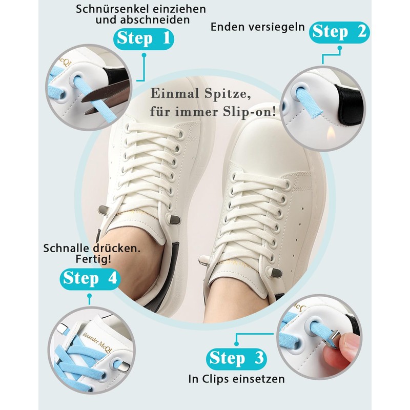 - Unique design: highly elastic polyester yarn material, tightly woven, double-layer flat laces. Once you have installed metal clips, they become elastic laces that feel comfortable on your foot and never need to be tied again during sports.