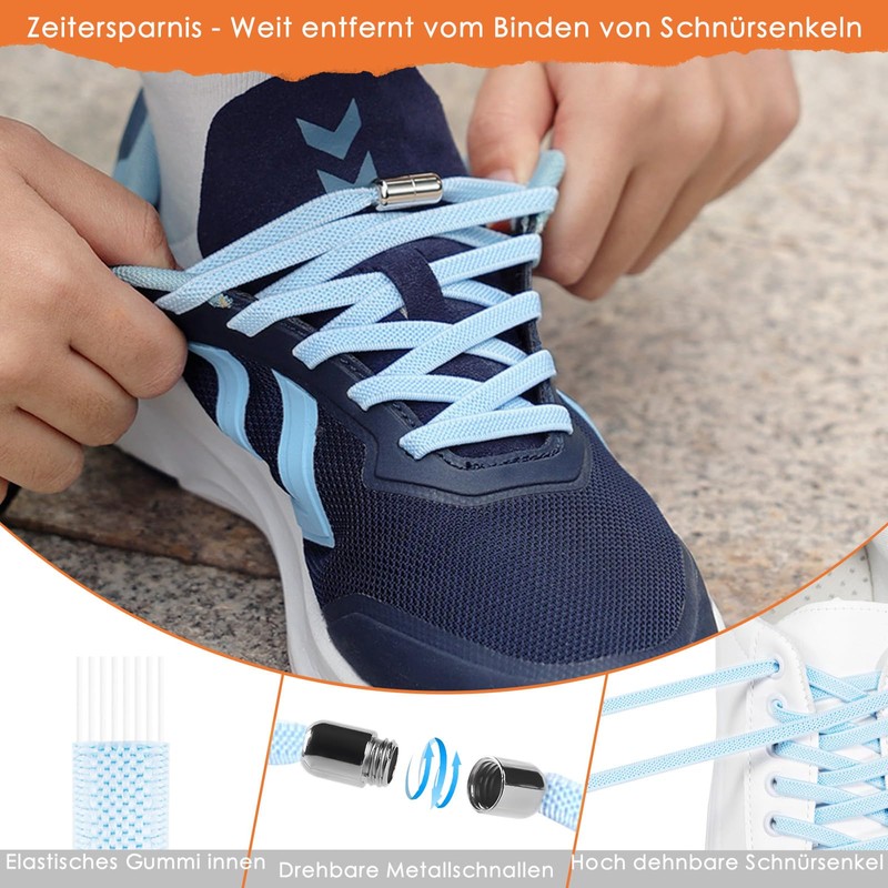 • Time-saving and easy to use: no more tying shoes. Elastic laces with metal capsules for putting on and taking off in seconds, perfect for children, adults, seniors and people with limited mobility - comfortable without bending over