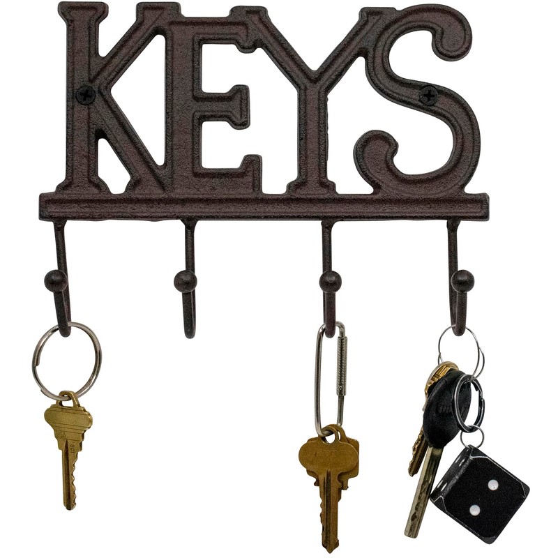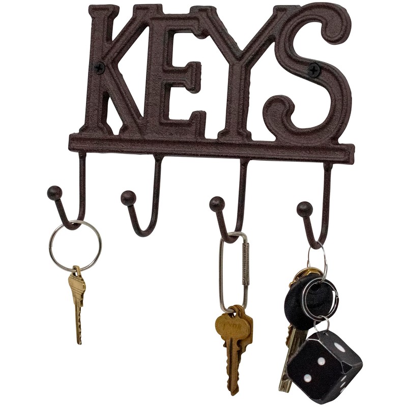 • Rustic, 1-lb cast iron key holder. Crafted from durable cast iron, this timeless piece combines practicality with vintage charm.