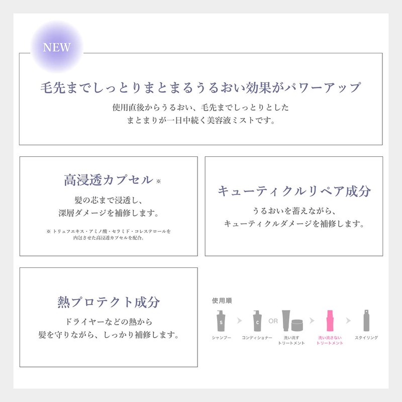 - Increases the moisturizing effect that moisturizes all the way to the ends. This serum mist is moisturizing and moisturizing all day long after use