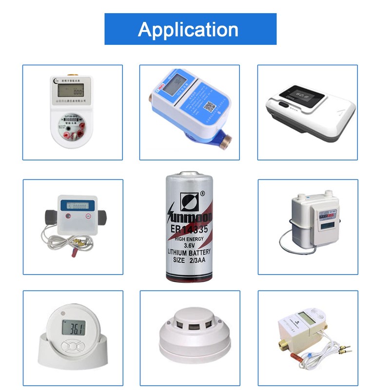 - [Application]:Used in water meter, meter, gas meter, PLC memory back-up power, public security alarm, instrumentation, automotive electronics equipment, emergency location, special testing electronic equipment and other fields.
