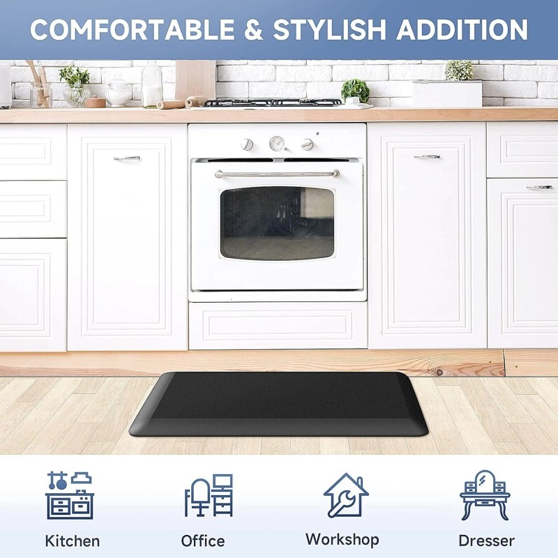 • 【Anti-Fatigue】Comfort floor mat provides comfort when standing. Reduces pressure on knees and ankles. Relieves back and spine pain when standing and relieves fatigue caused by standing for long periods.