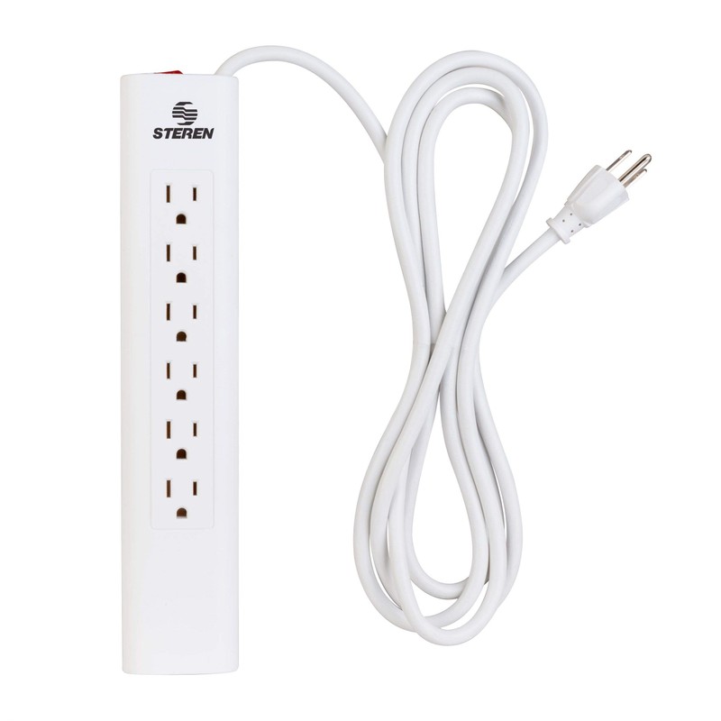 Steren 905-215 Tira De 6 Multicontactos Cable Largo, 2.5 m