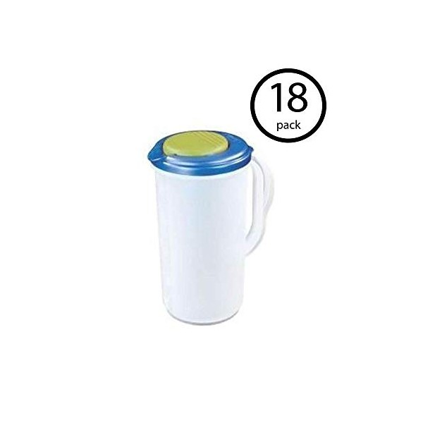 Sterilite 2 Quart, 64oz Clear Plastic Flip Top Drink Pitcher with Lid (18 Pack)