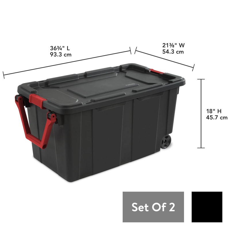 Sterilite Adult Plastic 40 Gal. Wheeled Industrial Tote Black Set of 2: