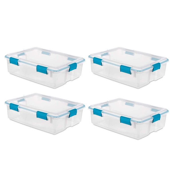 Sterilite Multipurpose 37 Quart Clear Plastic Under-Bed Storage Tote Bins with Secure Gasket Latching Lids for Home Organization, (4 Pack)