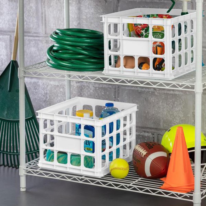Sterilite Storage Crate, Stackable Plastic Bin Open Basket with Handles, Organize Home, Garage, Office, School, White, 18-Pack