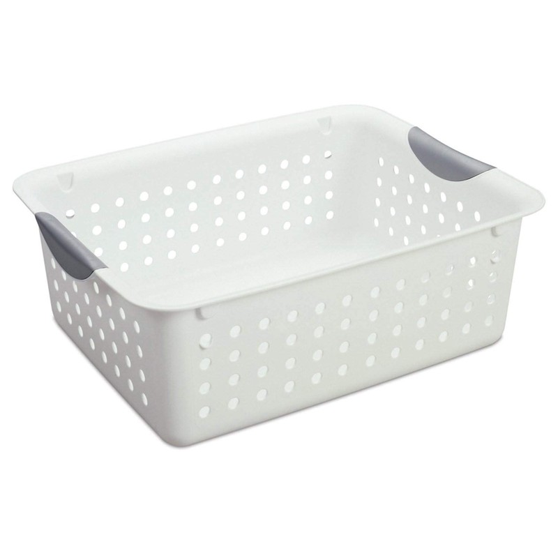 Bring total organization to your home storage system with the Sterilite Set of Ultra Plastic Storage Bin Baskets with Handles. This set of 18 multi-size plastic storage basket totes is ideal for organizing countertops, kitchen cabinets, pantries, and shelving around the home, featuring 6 deep and 12 medium baskets. Store vegetables or boxed goods in your kitchen pantry supplies in your bathroom cabinet, or organize cleaning supplies under your sink. Easy to clean and maintain, with a smooth surface and vent holes, you'll enjoy how easy it is to keep things neat and tidy around the house. The contoured handles allow for comfortable transporting, and the smooth finish is easy to clean. These storage containers create endless storage possibilities from discs and media to laundry to office supplies and more. The Sterilite storage baskets are ideal for garages, craft rooms, toys rooms, mudrooms, and anywhere else your home could benefit from simple storage solutions. Enjoy a new system of storage and household management with the Set of Ultra Plastic Storage Bin Baskets with Handles from Sterilite.