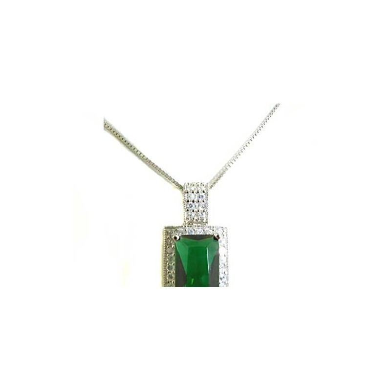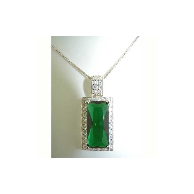 - This is a high quality very striking Solid Sterling Silver pendant has been set with this large Simulated Zambian Emerald made of Cubic Ziconia, bordered by an array of Sparkling White CZ's.