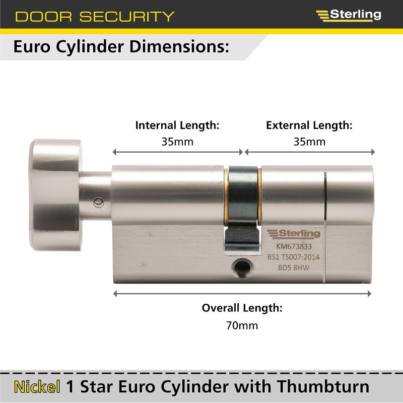 Sterling Int Ext BS1 ETN Cylinder Knob Satin Nickel Internal 35mm Outer 35mm (70mm Total)