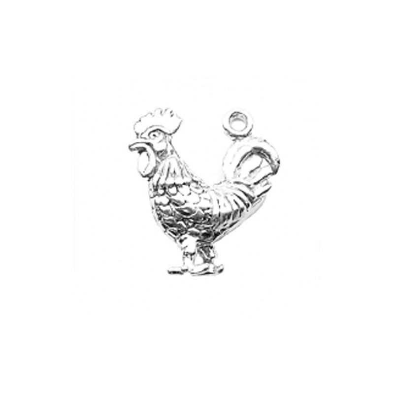 Sterling Silver 3D Rooster Chicken Bird Charm With Great Feather And Facial Details