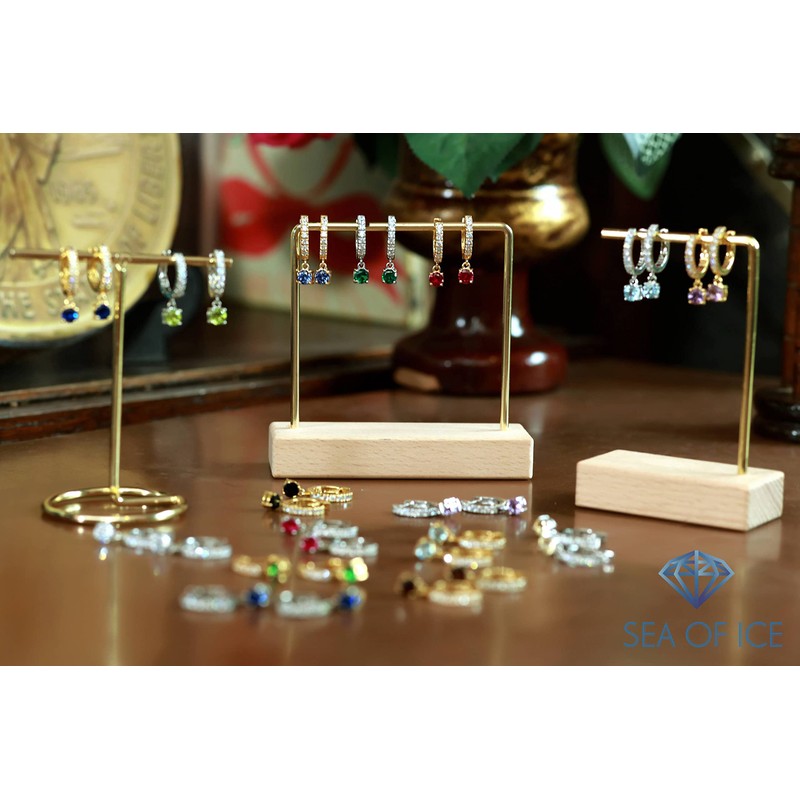 - These Drop Dangle Huggie Hoop Earrings are 2.5mm width and 15mm diameter, Set with 5mm Round Gemstone & 2mm Cleared White CZ Cubic Zirconia in Prong Set.
