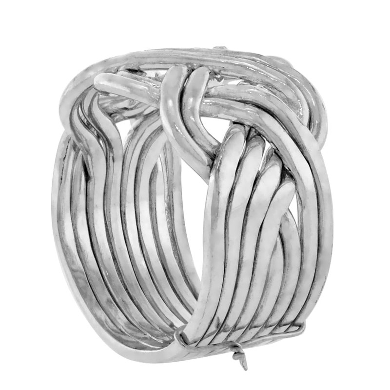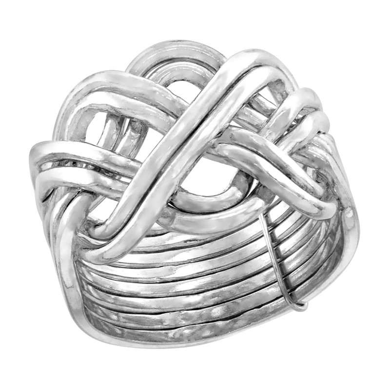 Sterling Silver 8-Piece Puzzle Ring Wire Wrapped Handmade for Men and Women 16mm wide size 6.5