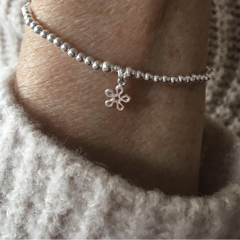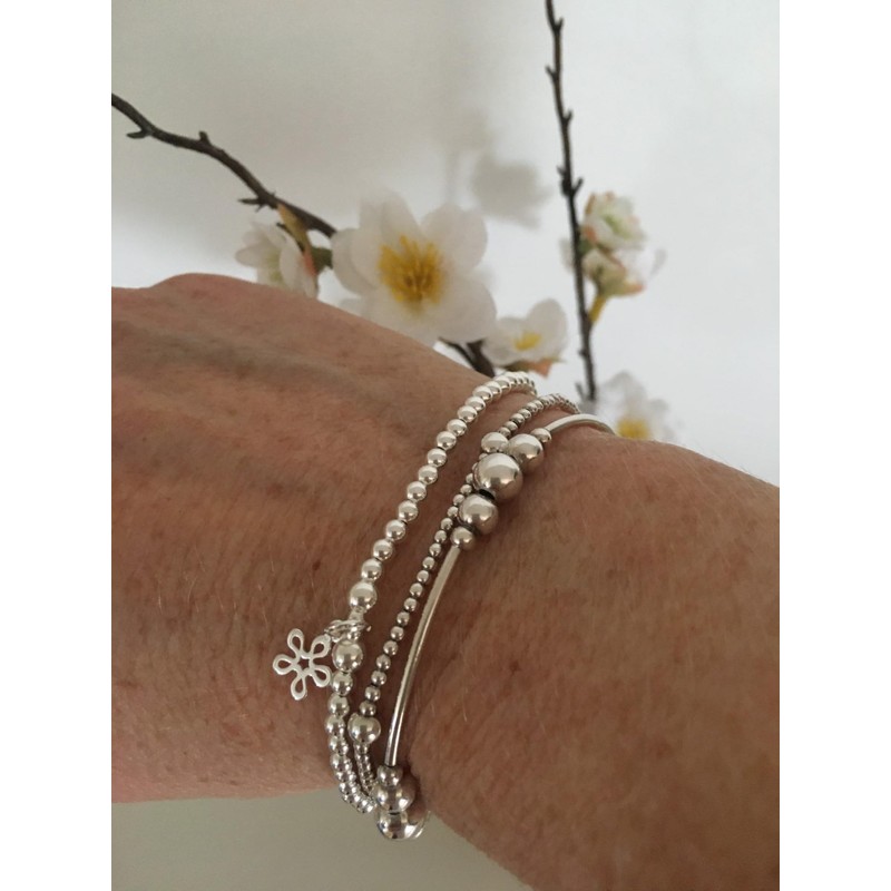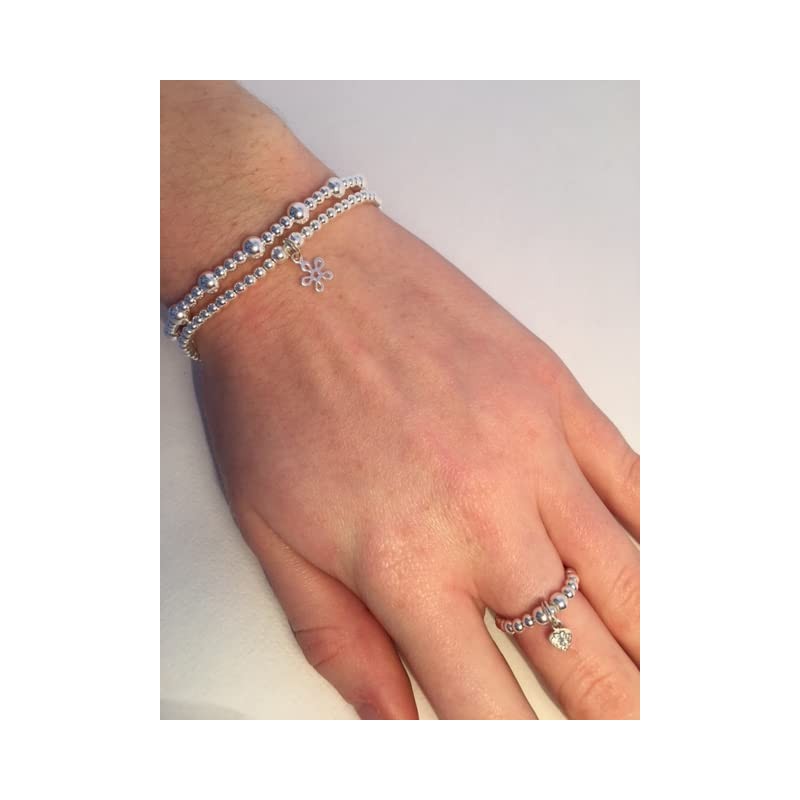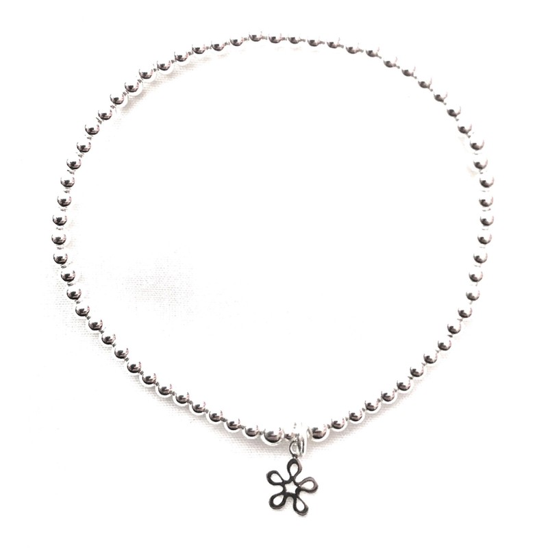 Sterling Silver 925 Beaded Stretch Open Flower Charm Bracelet