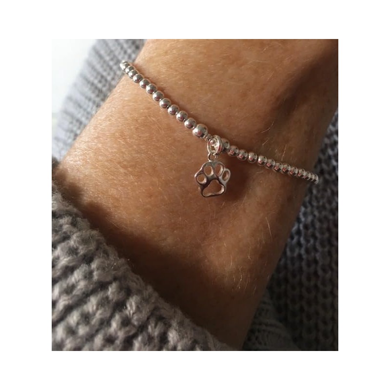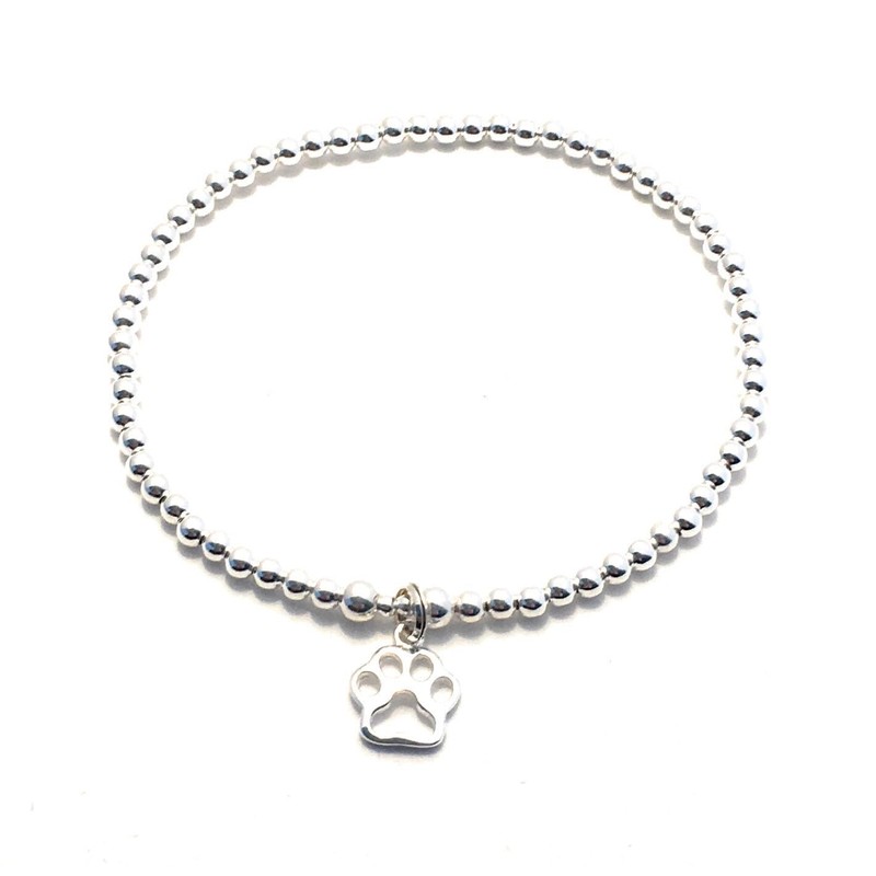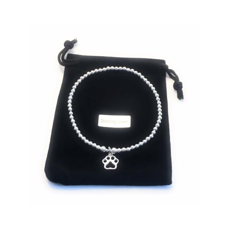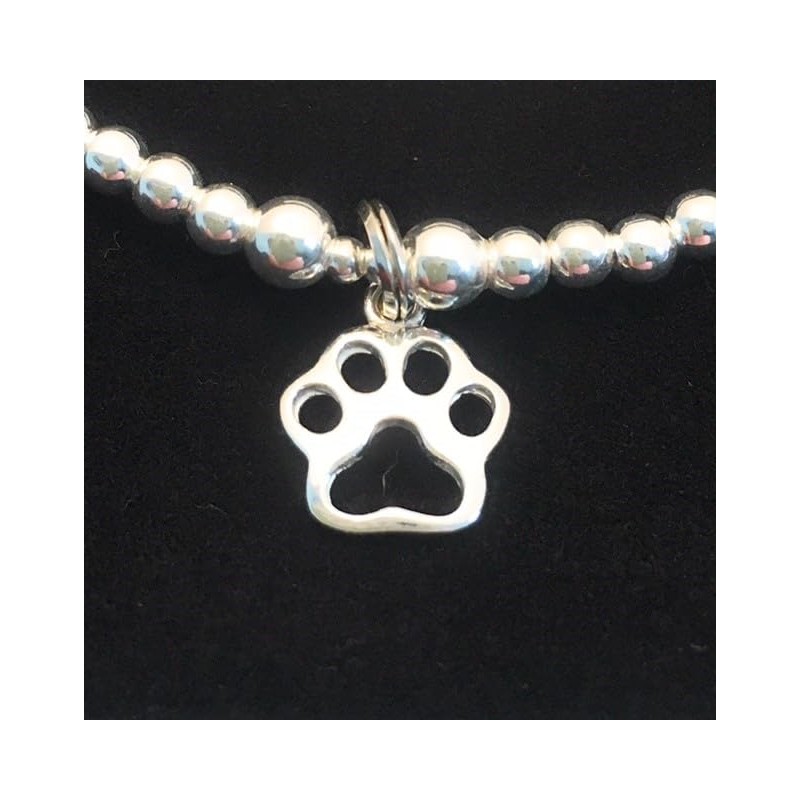 Sterling Silver 925 Beaded Stretch Paw Print Bracelet