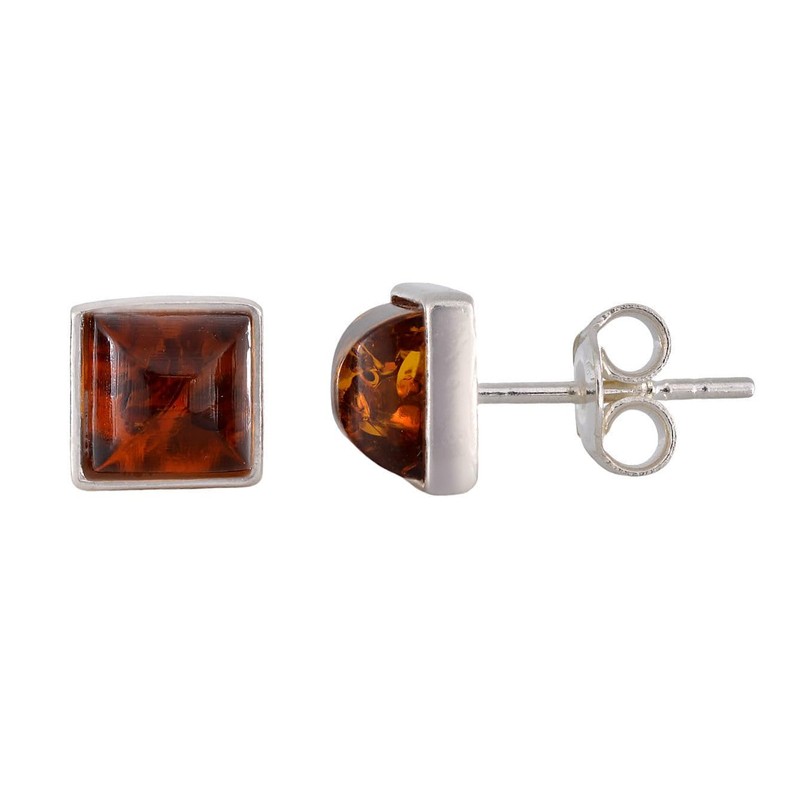 Sterling Silver and Honey Square Baltic Amber Earrings, Post Back Closure