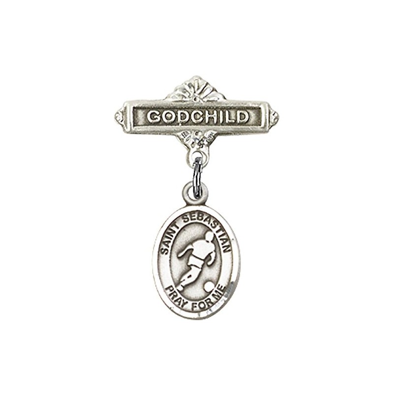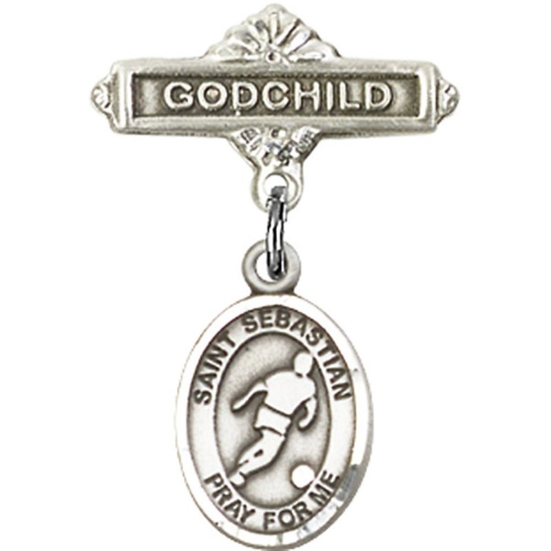Sterling Silver Baby Badge with St. Sebastian/Soccer Charm and Godchild Badge Pin