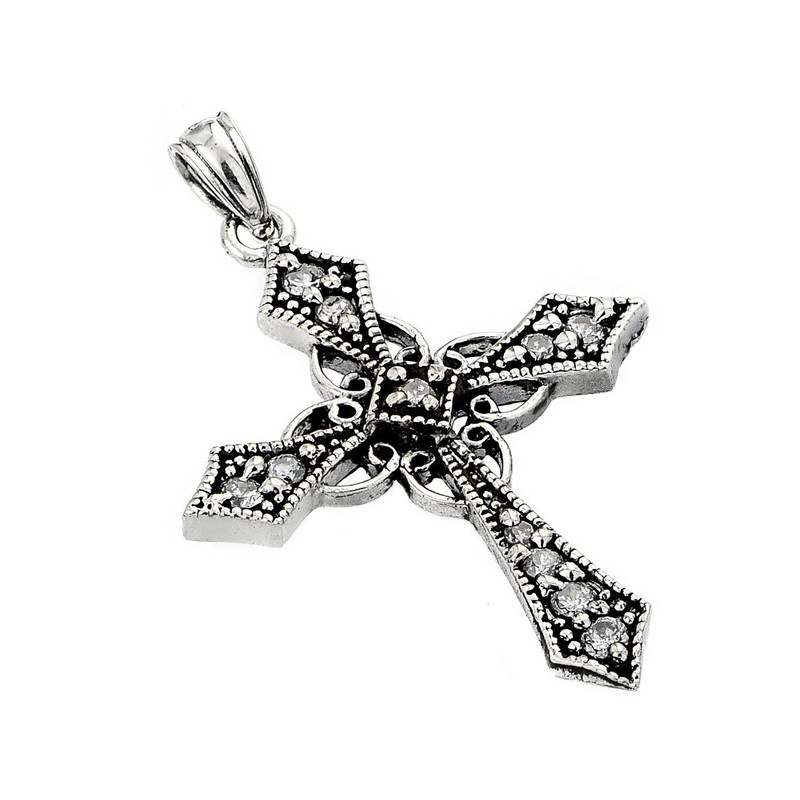 - antique-inspired Celtic cross necklace pendant or bracelet charm individually hand-set with clear cubic zirconia stones