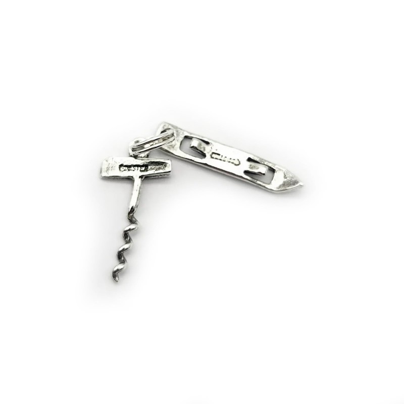 Sterling Silver Charm of Bottle Can Opener and Corkscrew Pendant Traditional Bracelet Dangle Jewelry Making Supply