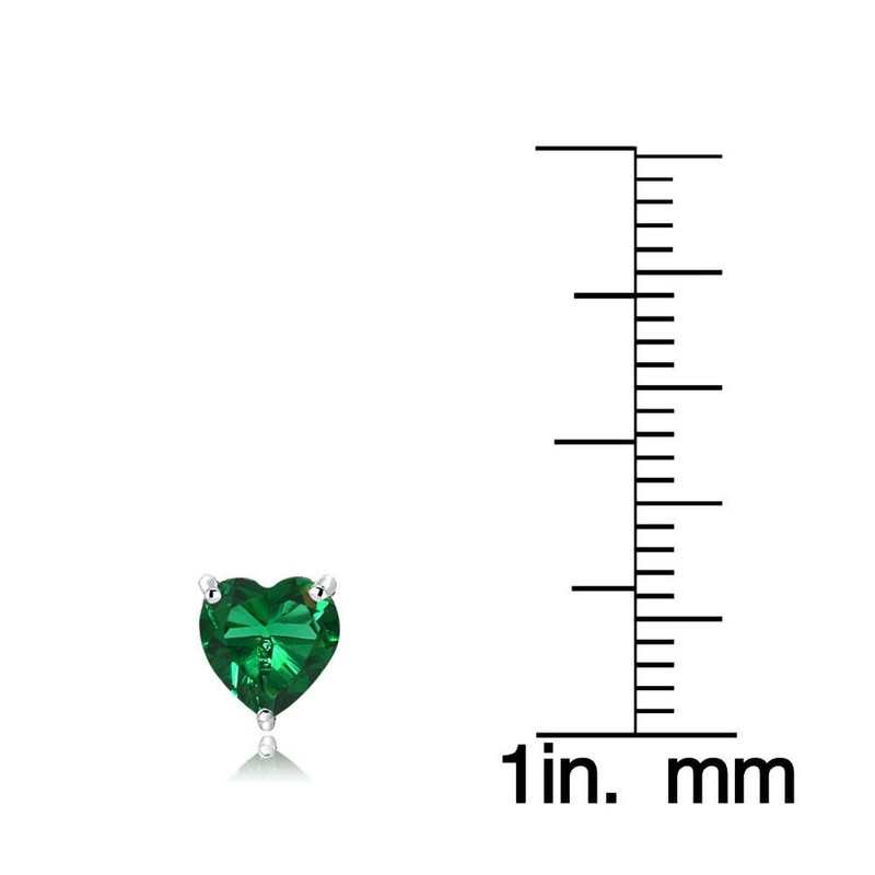 - Stud earrings feature 6mm heart shaped created emerald gemstones. The earrings are crafted of .925 sterling silver, nickle and tarnish free.