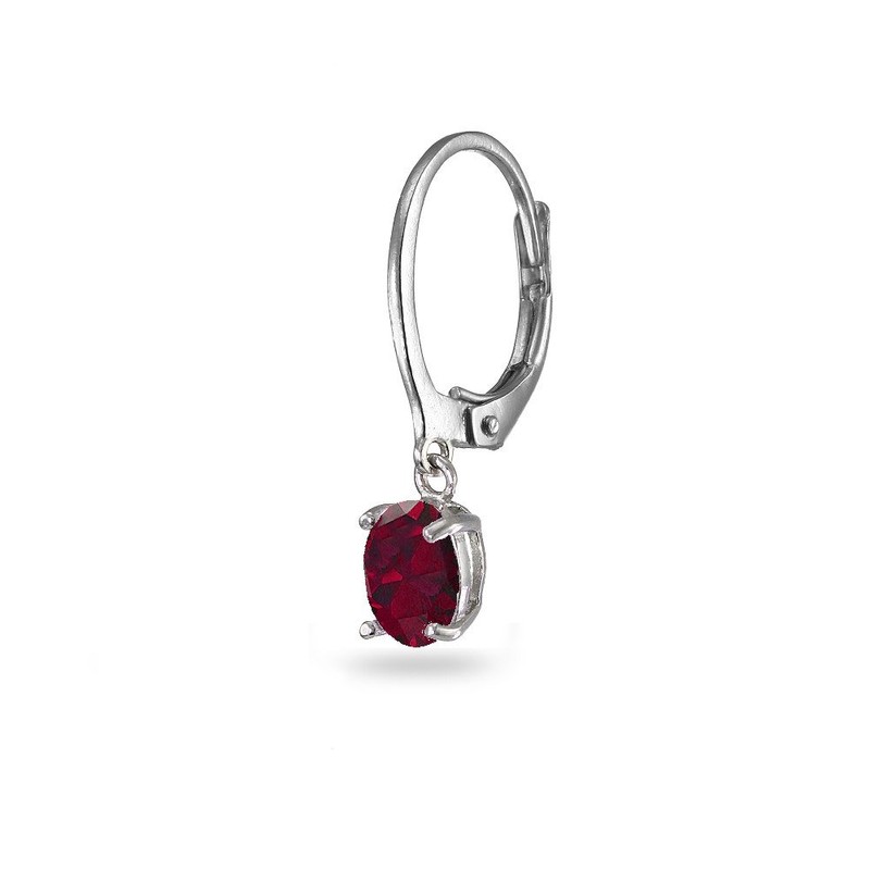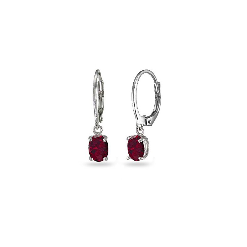 Sterling Silver Created Ruby 7x5mm Oval-cut Small Dainty Leverback Dangle Earrings for Women