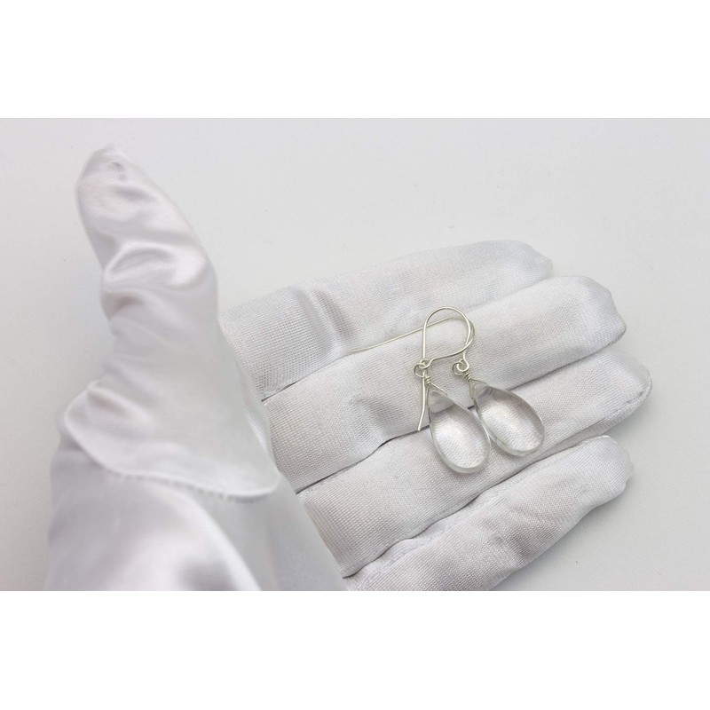 Sterling Silver Crystal Clear Quartz Earrings Smooth Pear Teardrop Briolettes Simple Drops