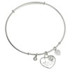 Sterling Silver Cubic Zirconia Love Heart Dangle Charm Bangle Bracelet, Adjustable 7"-7.5"