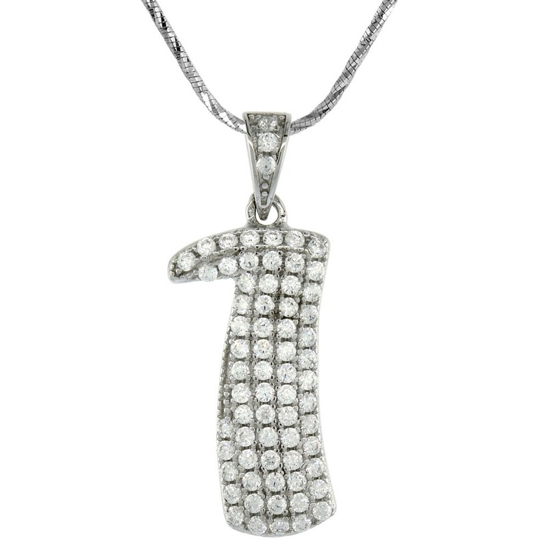 Sterling Silver Cubic Zirconia Number 1 Necklace Micro Pave 3/4 inch 16 inch RHB206H