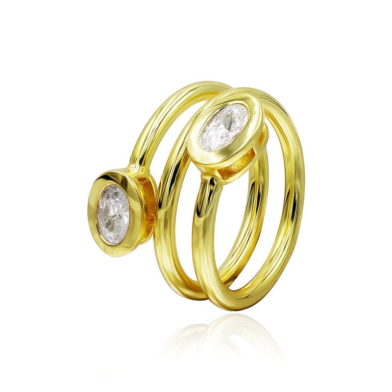 Sterling Silver CZ Cubic Zirconia Spiral Statement Ring, Size 5-9 for Christmas, New Year, Wedding, Engagement, Valentine Day,Women's Day (Yellow Gold 6)