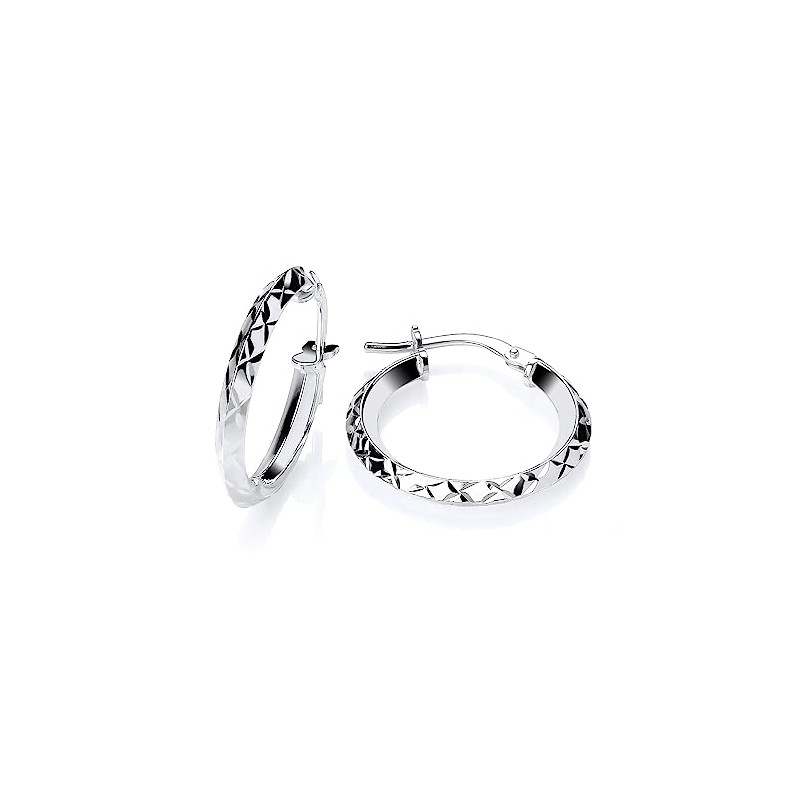 Sterling Silver Diamond Cut Creole Hoop Earrings - 20mm Diameter - 925 Silver