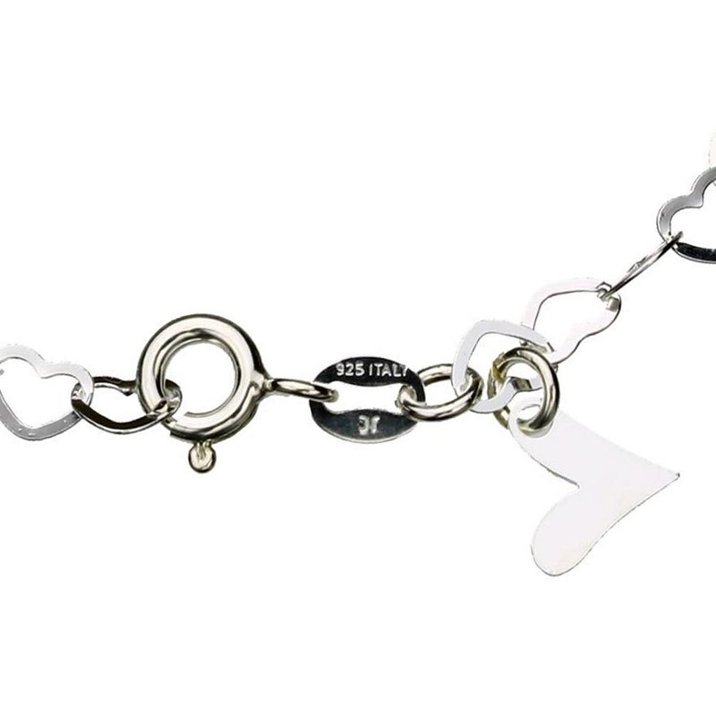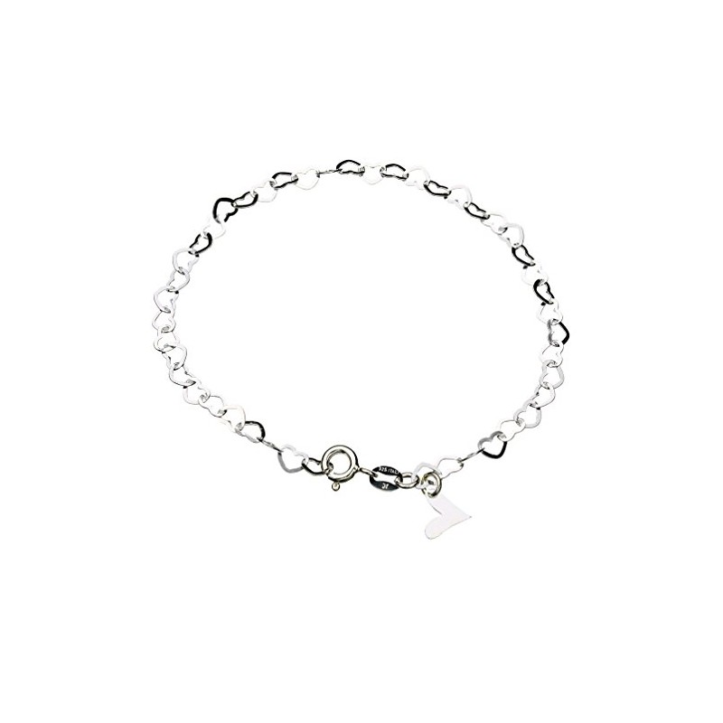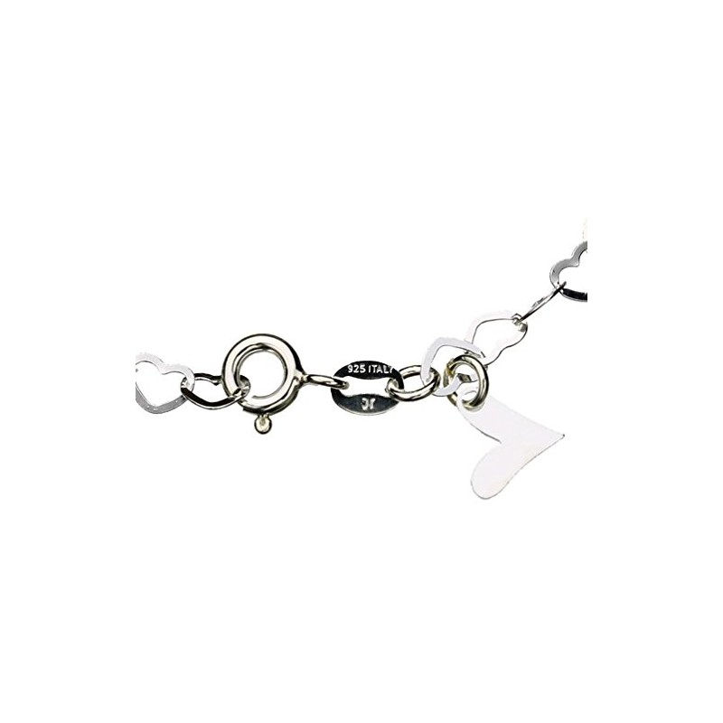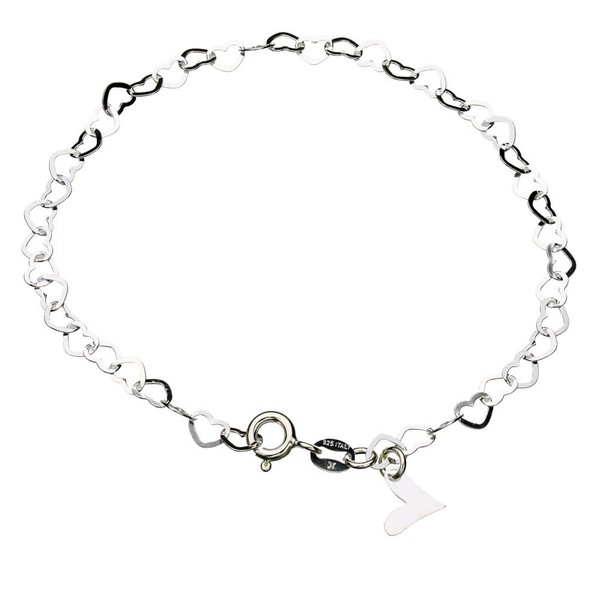 Sterling Silver Flat Heart Link Charm Bracelet Nickel Free Chain Italy, 7.5"