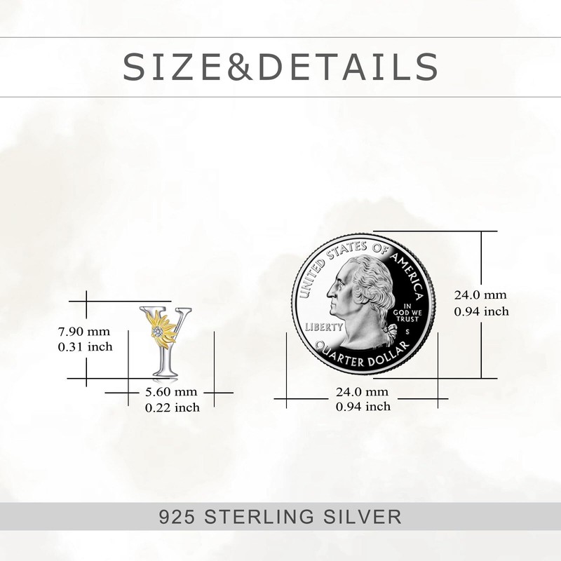 - S925 Sterling Silver white gold initial earring match gold sunflower, embellished with clear sparking CZ; Beautiful color contrast and excellent details treatments enable it more shining.
