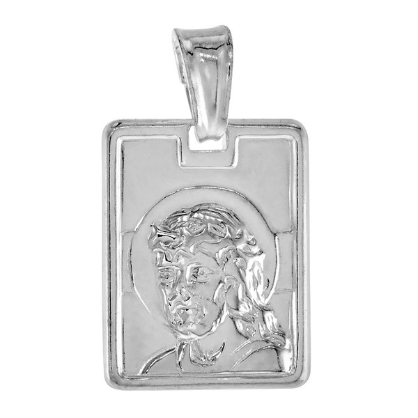 Sterling Silver Jesus Pendant, Made in Italy, Looks Great with Excellent Polished Finish Nice Detail and Definition and comes with a Removable Bale incase to be used on a Charm Bracelet. Excellent Catholic Necklace for Women and Men and available with or without a silver chain. It measures over 5/8 inch (17mm) Tall not including the bail.