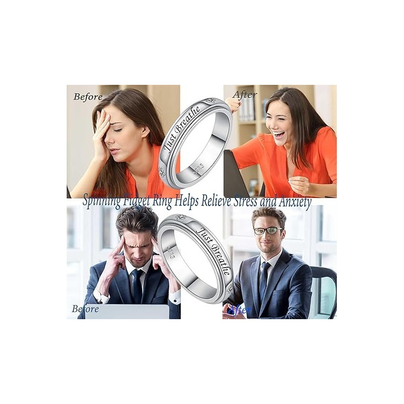 - ❤This rotatable Just Breathe spinning ring can help you release anxiety and reduce stress. When you're stressed, bored,upset,tired or if you are troubled by ADHD and Autism the rotating ring could somehow help relieving.